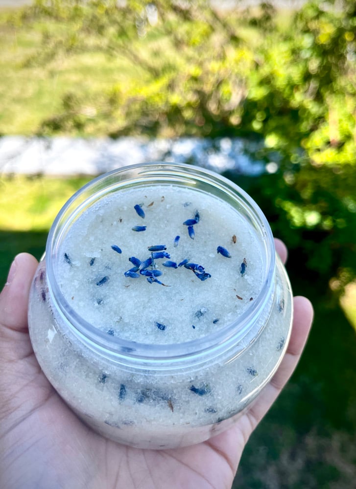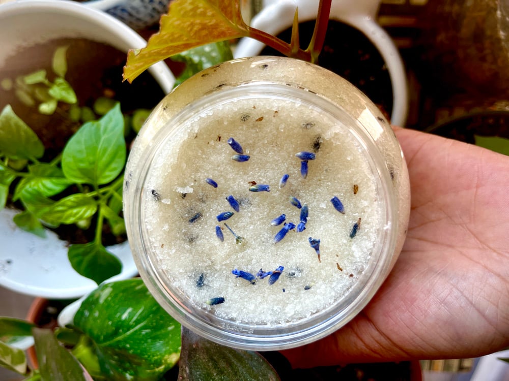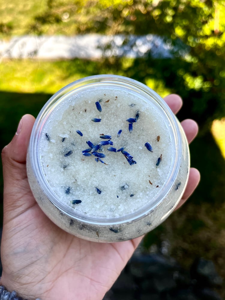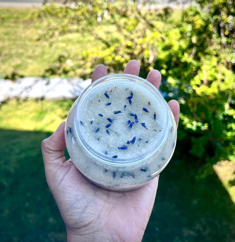 Introducing our Lavender Bean Body Scrub. This scrub is part of our Lavender Bean collection and pairs well with our Lavender Bean body oil and body butter. The scent of vanilla and lavender will send you into a sweet calming bliss and relax the mind. The body scrub also helps moisturize, clear up acne, exfoliate, and repair the skin.